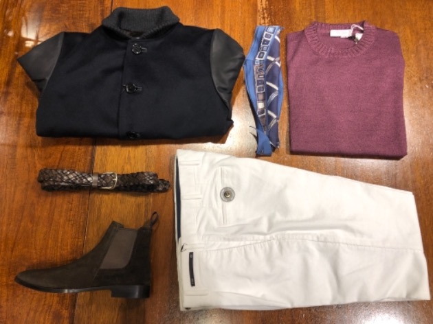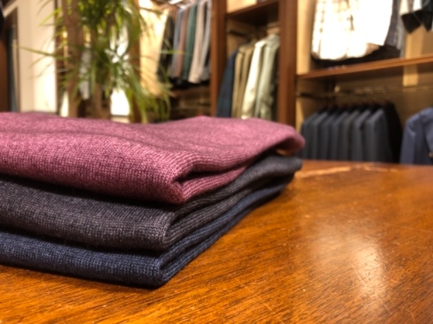 スタジャンといったカジュアルなアイテムですが、こちらはカシミヤとレザーのコンビネーション素材。