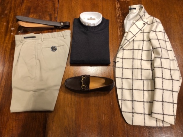 ジャケット、シャツ、パンツが淡いトーンで合わせたのなら全体を引き締めてくれること間違いなしです。