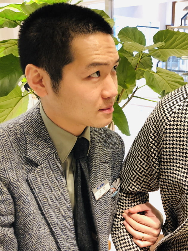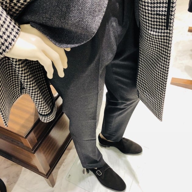 よく見ると、グレーのジャケットにグレーのパンツ。なかなか上級な合わせですが、絶妙にコントラストのバランスを取っていますね。上手いです。