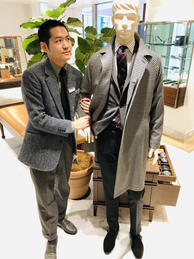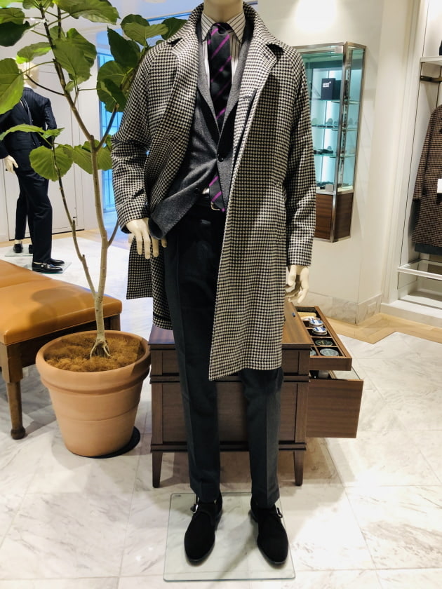 さて、このコートを使用した、ナイスなマネキンが店内にございます。