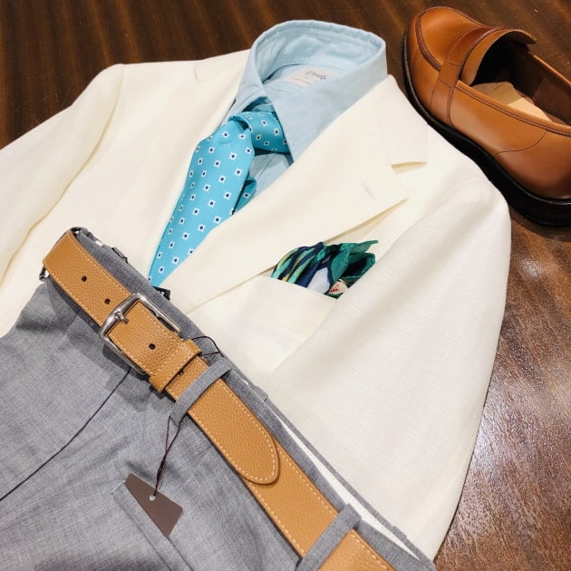 コーディネイトは敢えてのタイドアップスタイルをご提案。