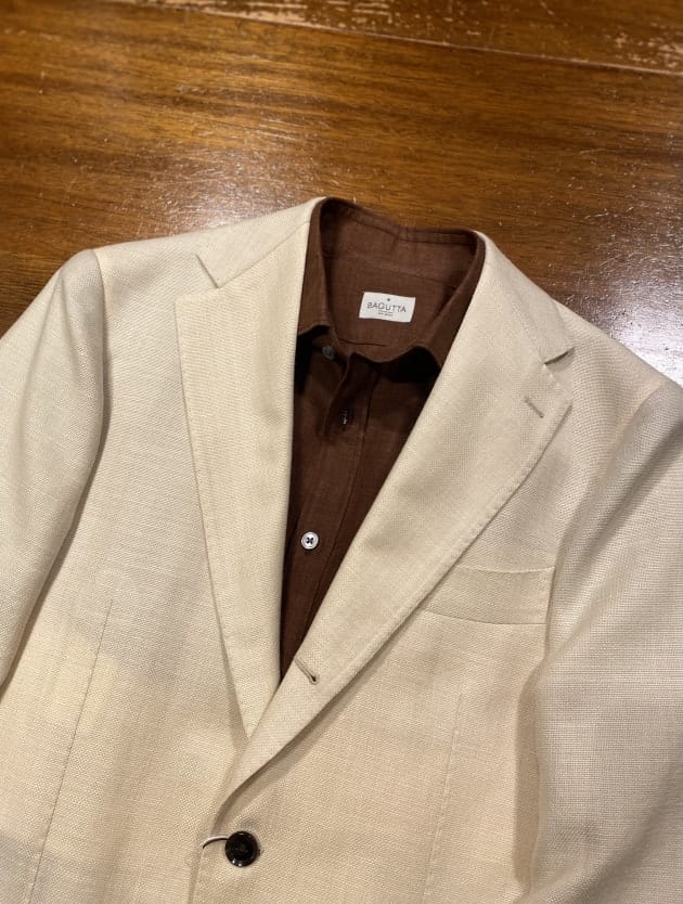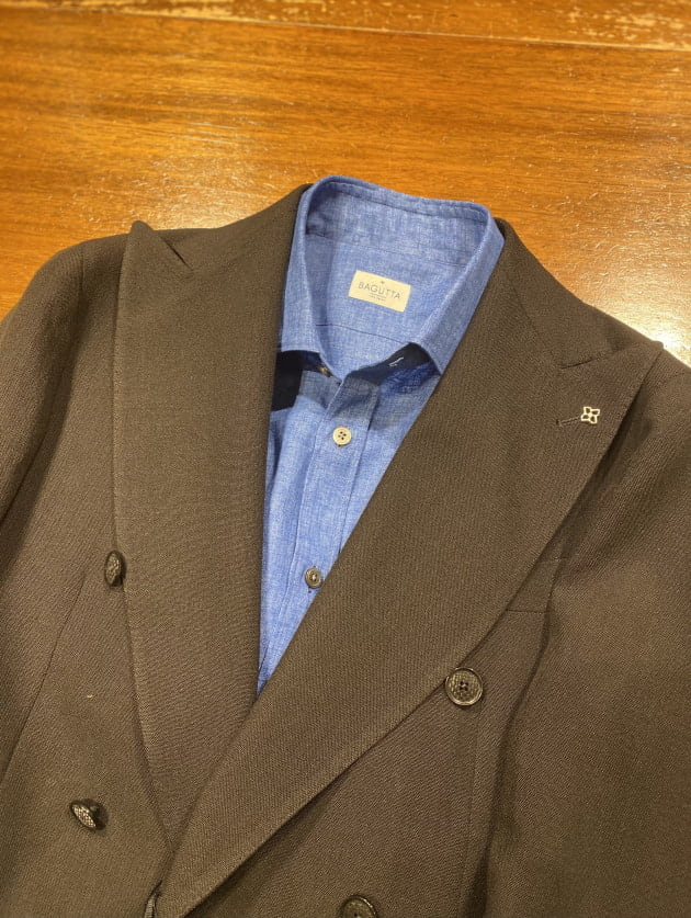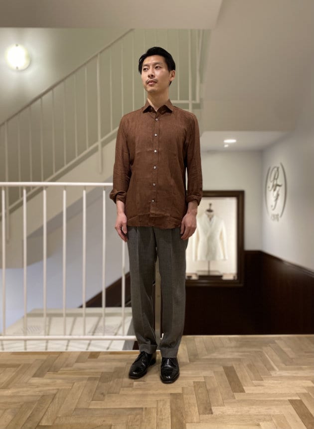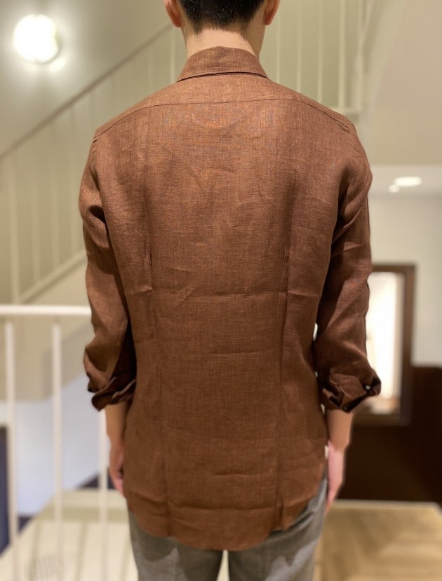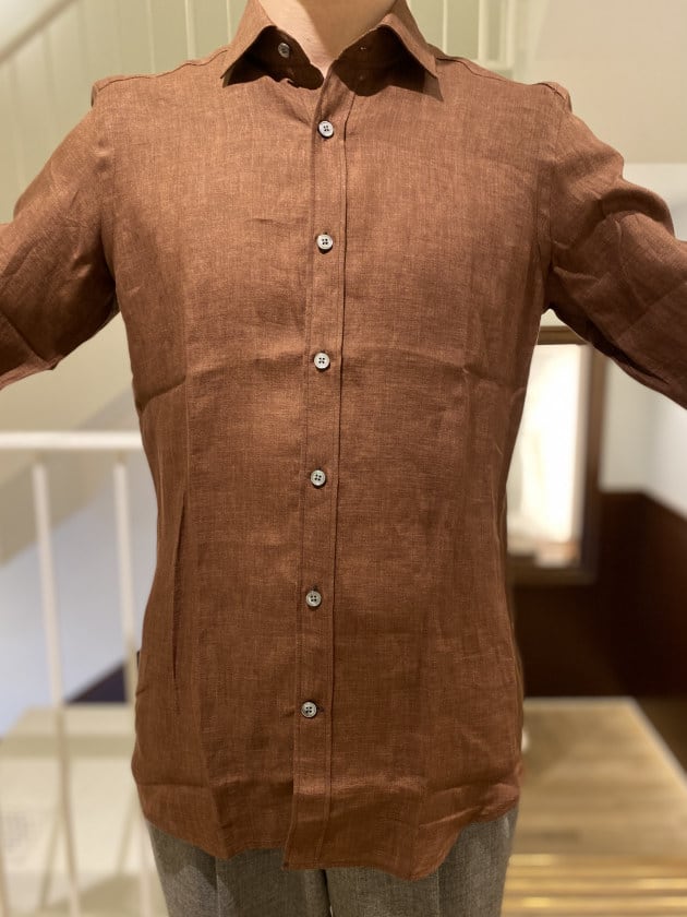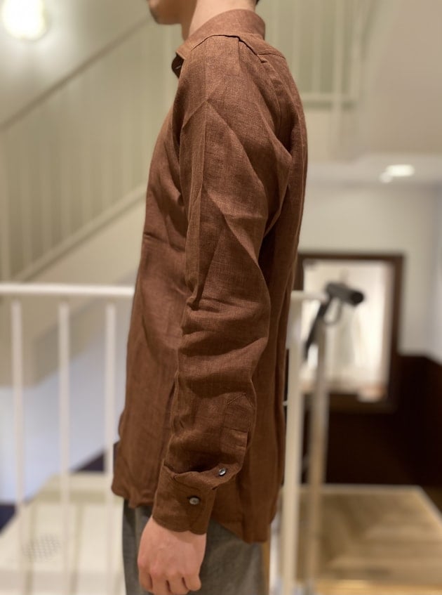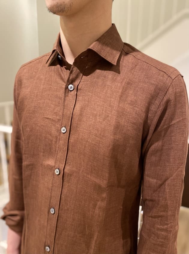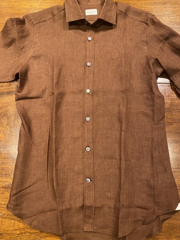 BAGUTTA BERLINO LINEN WIDE COLLAR SHIRT
