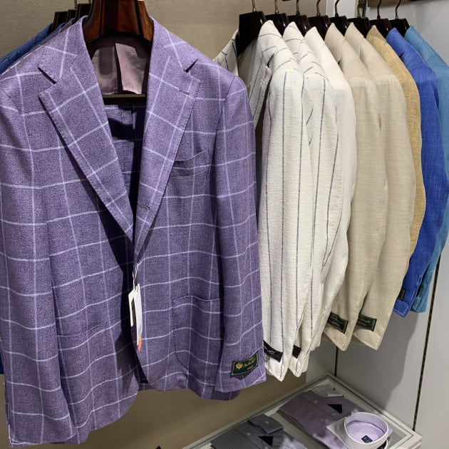 夏場のエレガントスタイルといったイメージでVゾーンを合わせてみました。淡いピンクのシャツがポイントですかね。もちろんタイドアップだけでなく、ニットポロやクルーネックをインナーに合わせても良いですね。