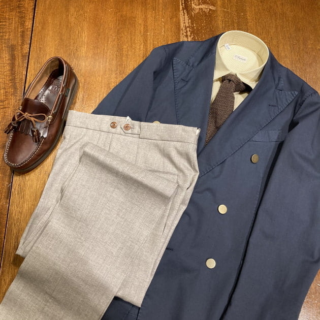 カジュアルなシューズですけど、ジャケットにタイドアップで合わせて頂きたいです。