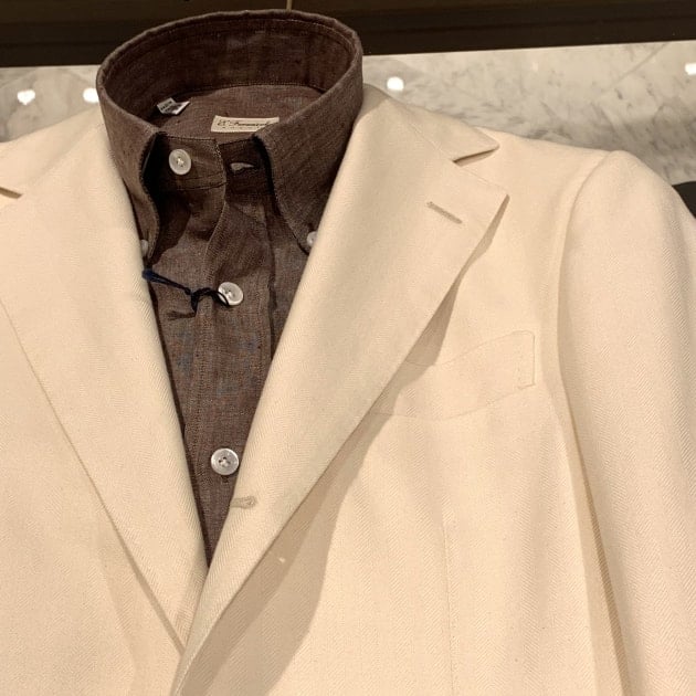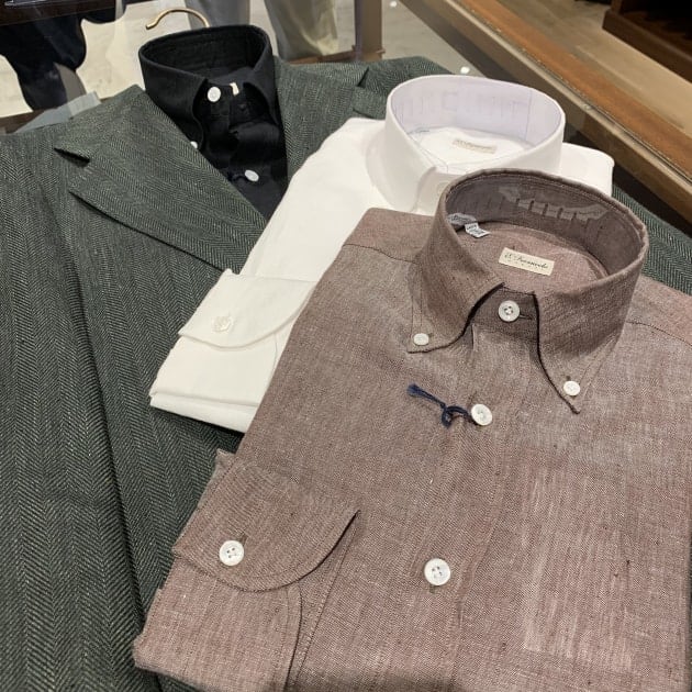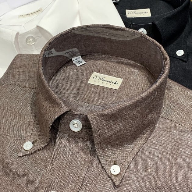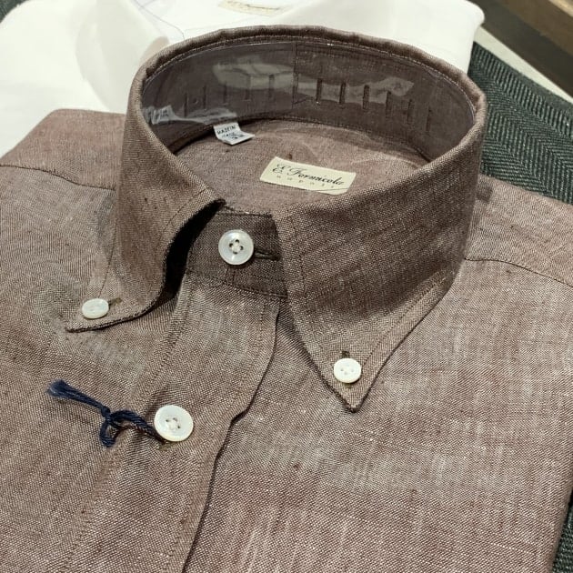 本日のご紹介です。私も個人的に愛用しているブランド<ERRICO FORMICOLA>のリネンボタンダウンシャツです。