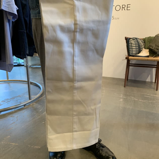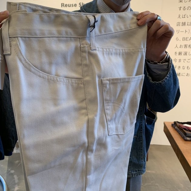 「珍しいカラーですよね。少し太めのシルエットも良い感じですよ。」アイボリーのような発色でしょうか。状態も良く、確かに使えそうな感じです。サイズがお合いになれば、是非。