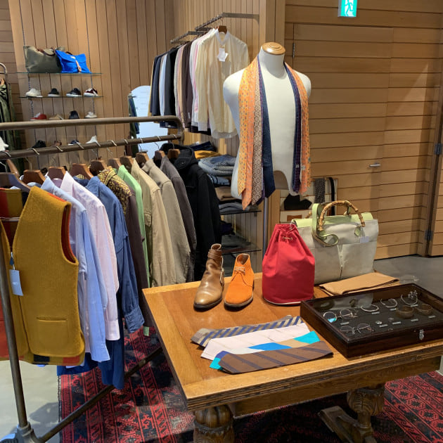 シューズから小物まで幅広い商品構成。お馴染みのブランドのモノからメゾンブランド、高級重衣料に至るまで。