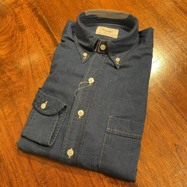 ボタンダウンシリーズの最後はこちらのインディゴ。デニムシャツですね。