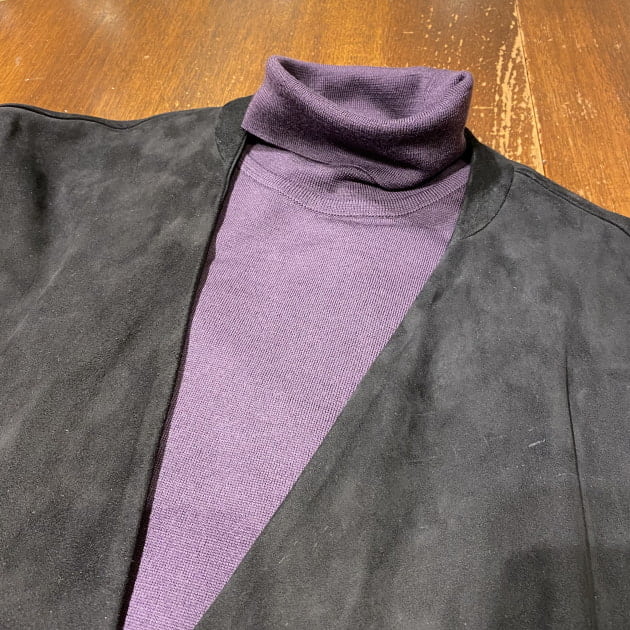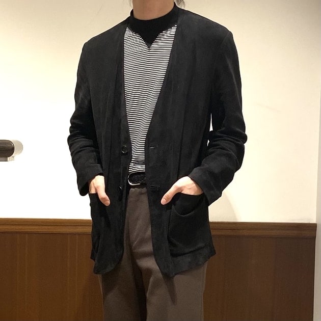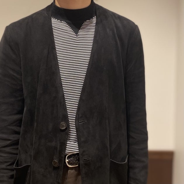 スエードといえば少し野暮ったい、粗野な印象があると思いますが、<QUATTROCCHI>のスエードジャケットはきめ細かなゴートスエードを使用している為、上品なドレープ感があります。