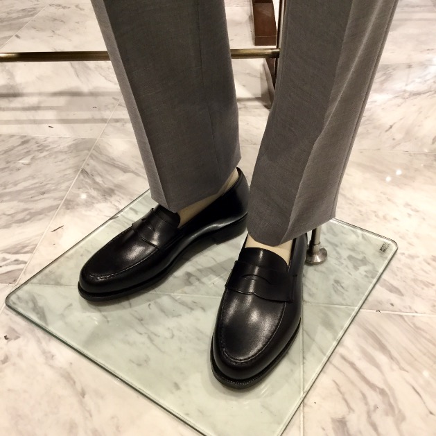 マネキンはウール素材のスラックスにローファーを合わせておりますが、コットンパンツも相性抜群です。