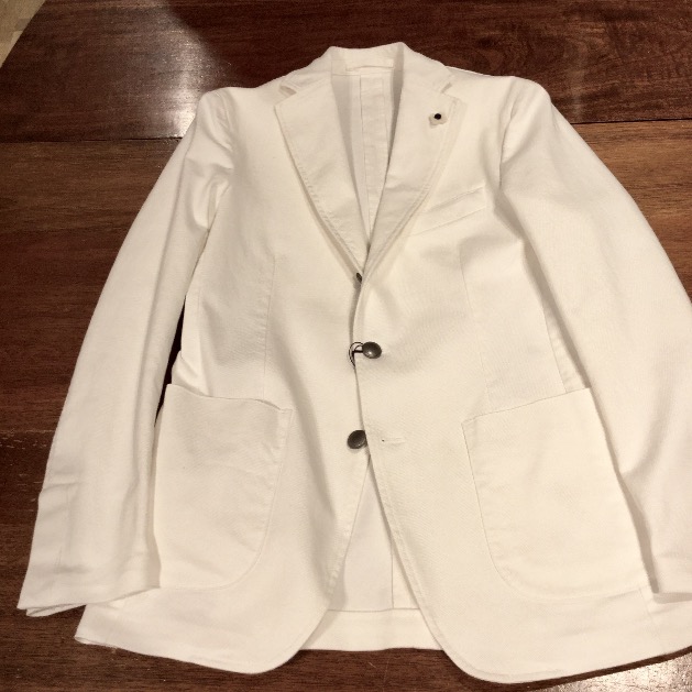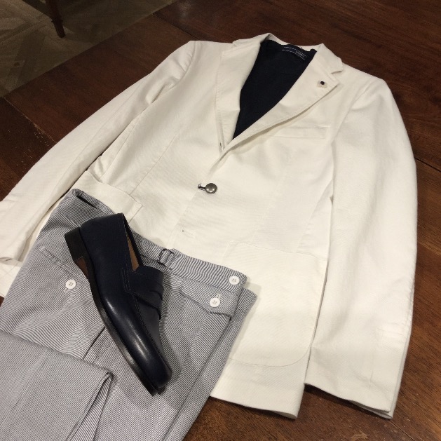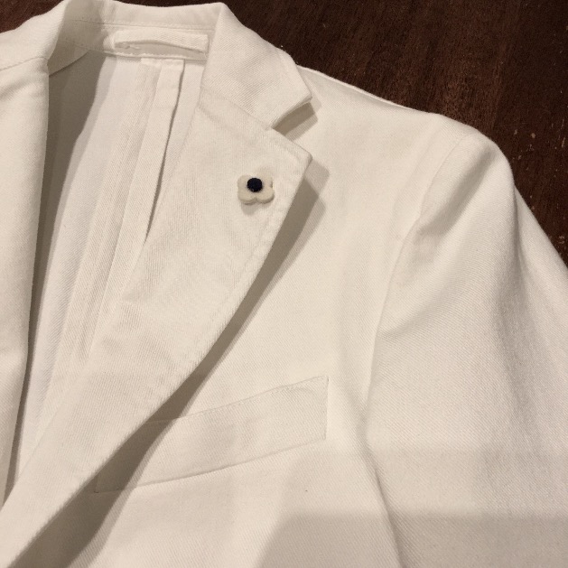 白いジャケットというと、ちょっと2枚目過ぎる…と思われがちですが、デニム素材だとそれが弱まり、着こなし易いですよ。