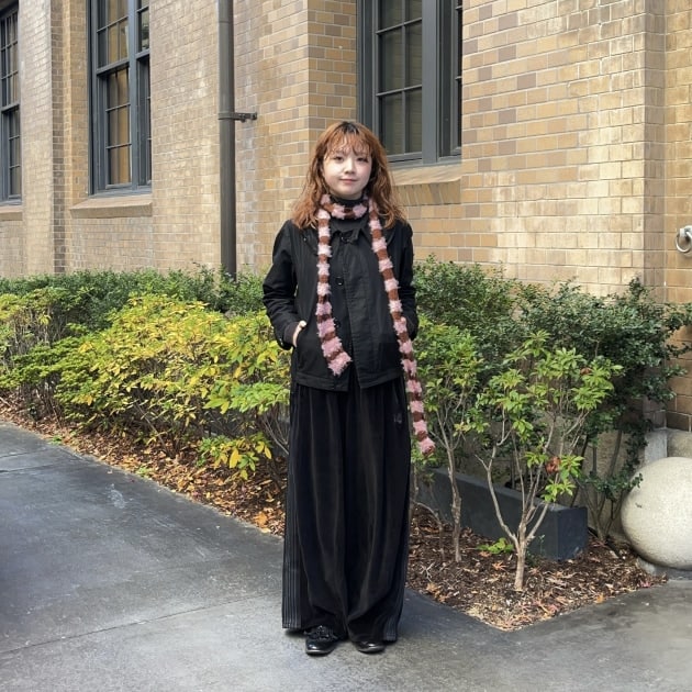 やっぱりオールブラックで仕上げたい+色が好きな私は小物で差し色を。