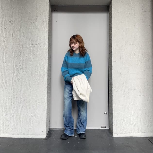 サイズ感は思っているより大きすぎずで、155cmの私でもSサイズがグッドな感じでした。ニットをつくる工程がすべて自社工場っていうのも追求したこだわりです。