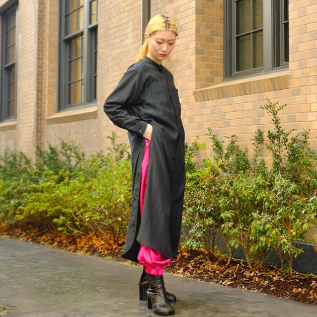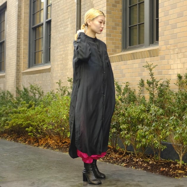 バンドカラーのワンピースというと毎年気になるアイテムではありますが、光沢感のある生地とアイキャッチになるディテールで新鮮味も増し増しです。