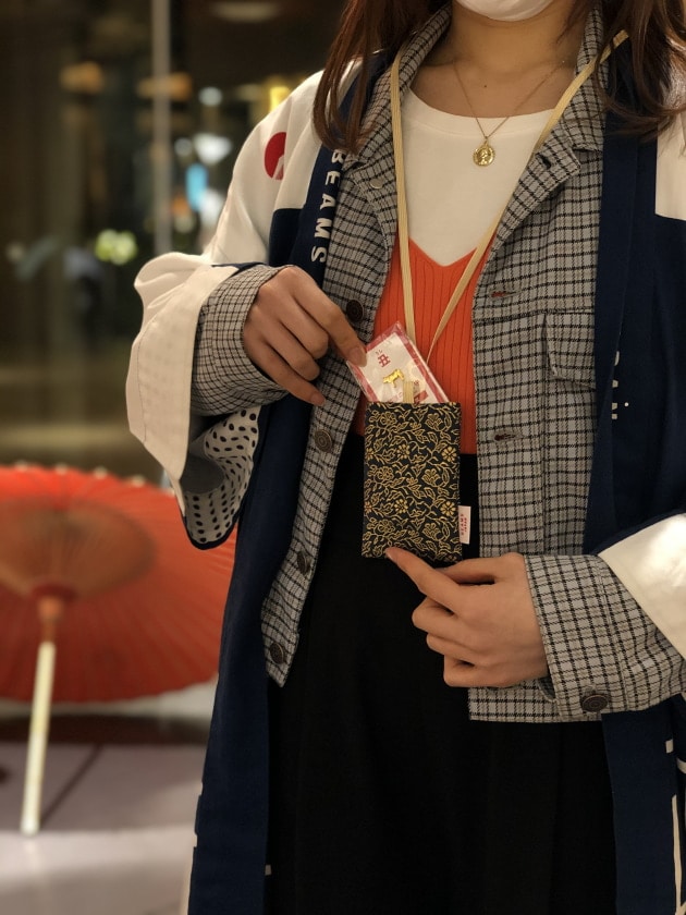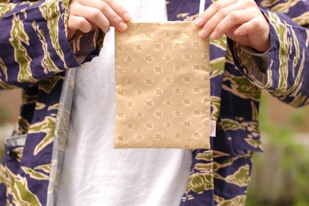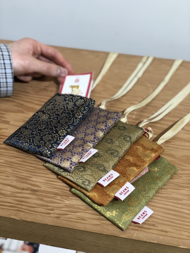<鳥居株式会社(トリイカブシキガイシャ)>と<BEAMS JAPAN(ビームス ジャパン)>とのコラボで生まれたのは表装裂を使用したお守り袋。