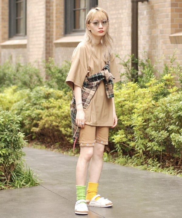 Tシャツとショーツだからこそ、それぞれの個性が出るスタイリングになってます。