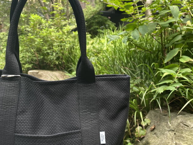 なんとこちら、<株式会社タネイ>が手がける柔道着の帯をハンドルに使用したトートバッグなのです。ときたら、ボディはこれまた武道の生地を採用しており、和の雰囲気が漂っております。