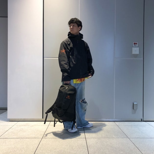 始祖鳥がBEAMSのコーポレートカラーであるオレンジで仕上げられているのも魅力の1つ。ブラックコーデとの相性は抜群です。