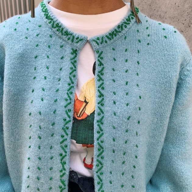 <BEAMS BOY> / 7ゲージ ビーズ エンブロイダリー カーディガン