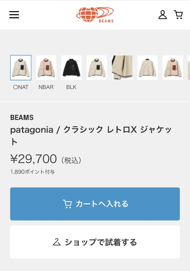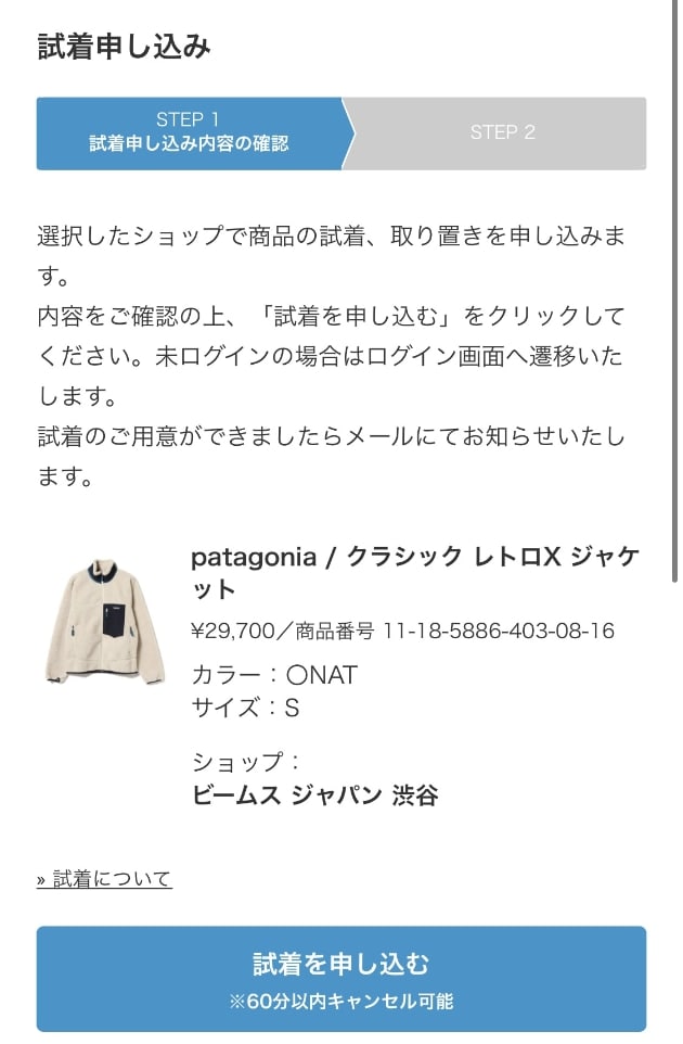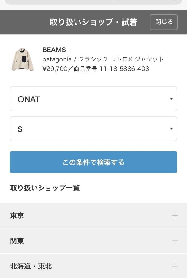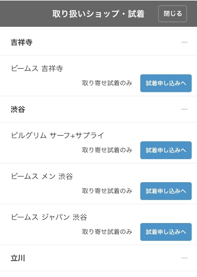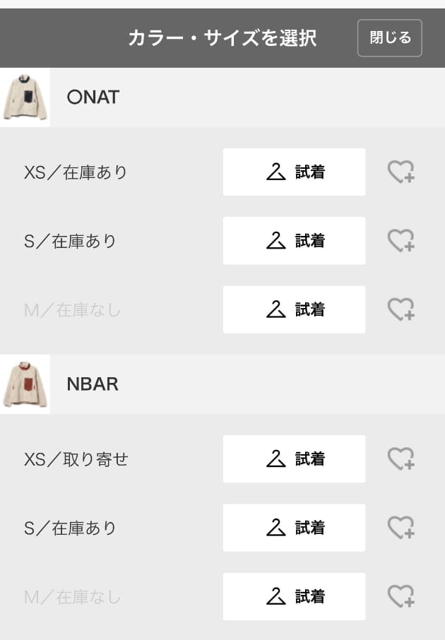 ④サイズと色を確認して、試着しに行きたい店舗を選ぶ。