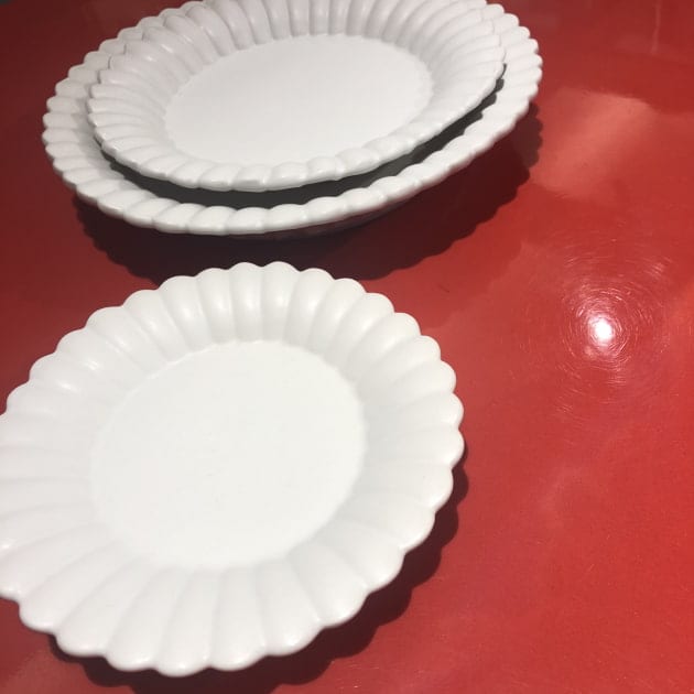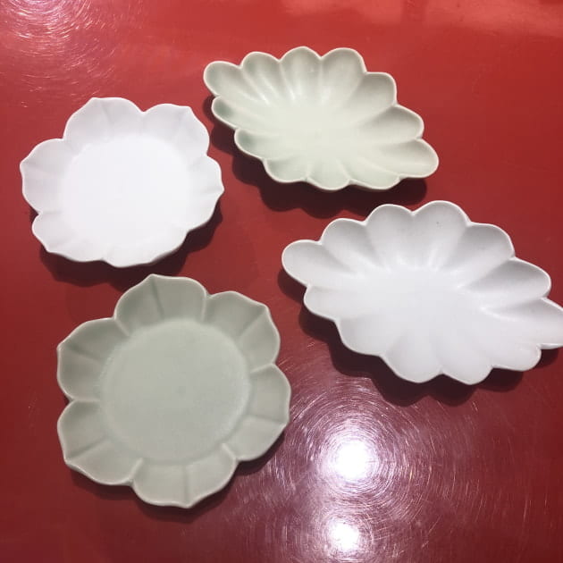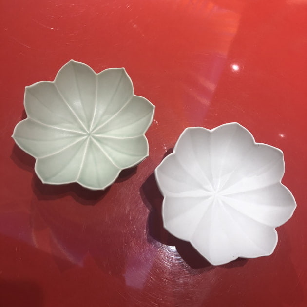 花がモチーフとなり、200年以上前に存在した’’臼杵焼’’を復活させ誕生したお皿です。古のデザイナーセンスを感じることのできる、美しい白磁です。