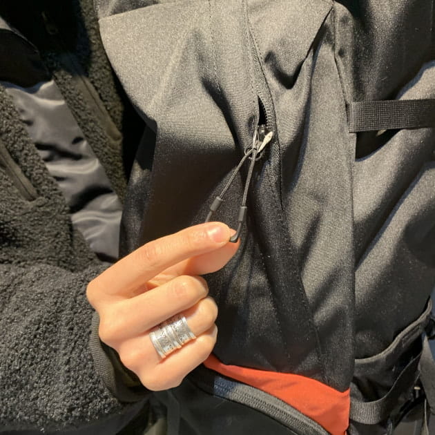 <Canyonworks>の定番モデル「Kitakama」をベースに。荷物が少なくてもパッキングしやすく、冬のグローブを付けた手でも開けやすい仕様になっています。