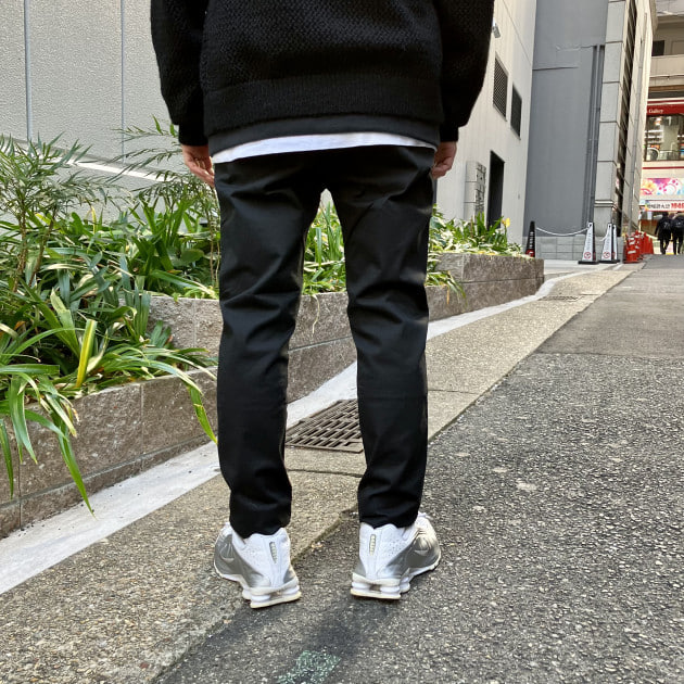 見た目はベーシックなチノ生地ですが、ポリウレタンが混紡されており快適な履き心地となっております。