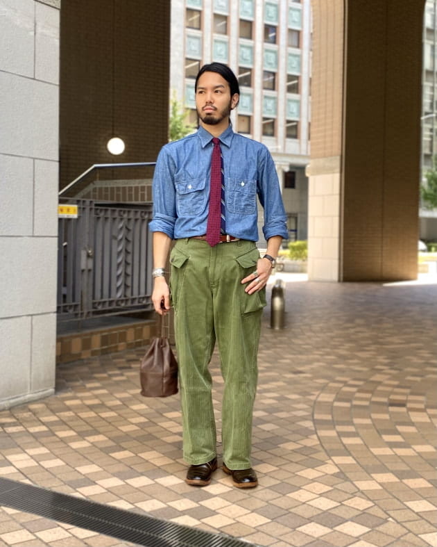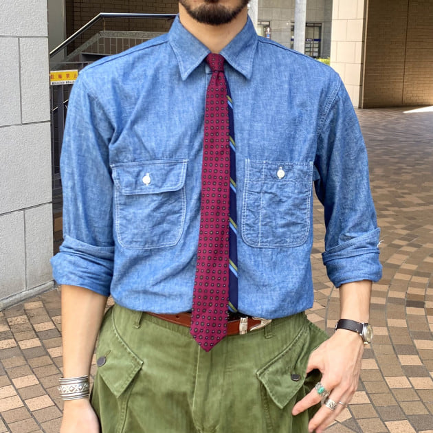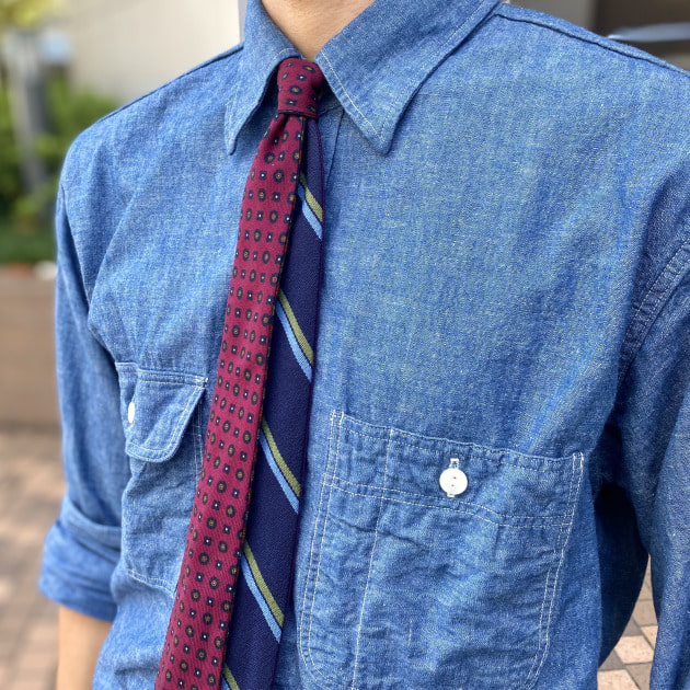 着用しているこちらのシャンブレーシャツについては、近日中にブログで触れようと思っておりますので、よろしくお願いいたします。