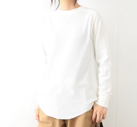 肉厚で伸縮性に優れたベビーワッフル素材のTシャツ。保温性に優れ、レイヤードし易いサイジングの為シャツやスウェットのインナーとして重宝して頂けます!!
