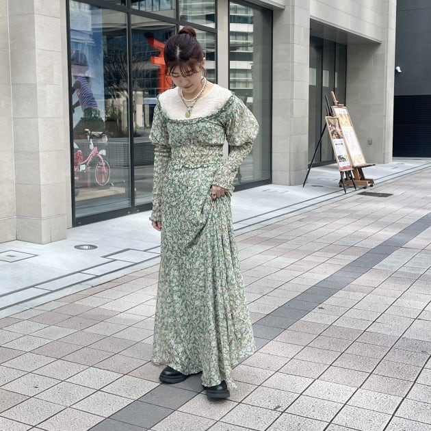 小花柄で可愛くなりすぎず、襟元が開いてるのでインナーによって色んな着こなしを楽しめそうです!