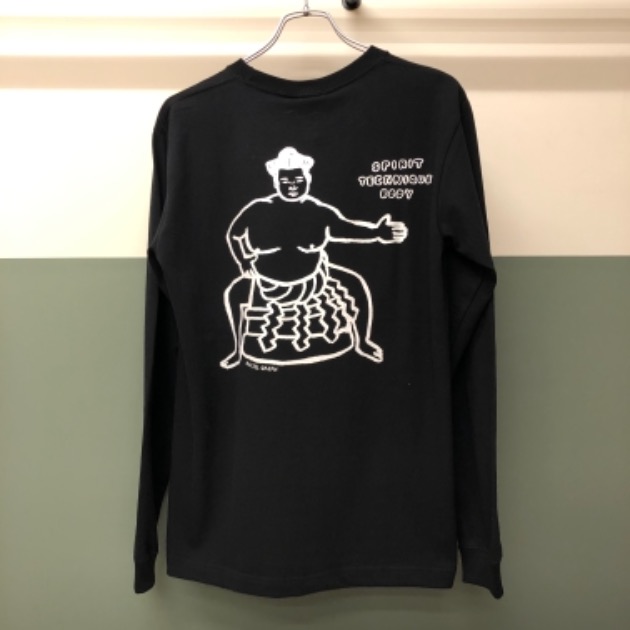 フロントはシンプルなカットソーですが、バックプリントを見ると、、