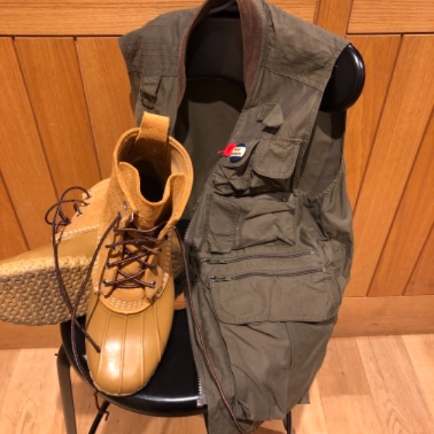 KENNETH FIELDのフィッシングベストにL.L.Beanのブーツ。