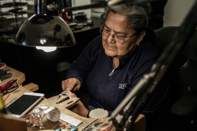 Jennifer Curtisのジュエリーは、細かく凹凸が刻まれた自作の鏨を駆使したスタンプワークと、多面的なカットによる精細な輪郭と光沢が特徴です。女性アーティストならではの丁寧な作品は、男女問わず、多くの方に人気があります!