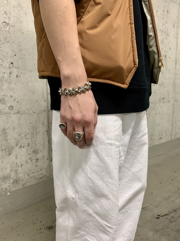 ゴツめのバングルは一見ハードルが高そうですが、ニットやコートの裾からちょこっと出る感じとか非常にかっこいいと思います!
