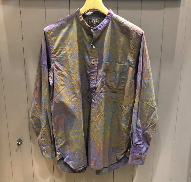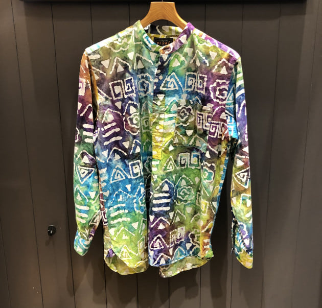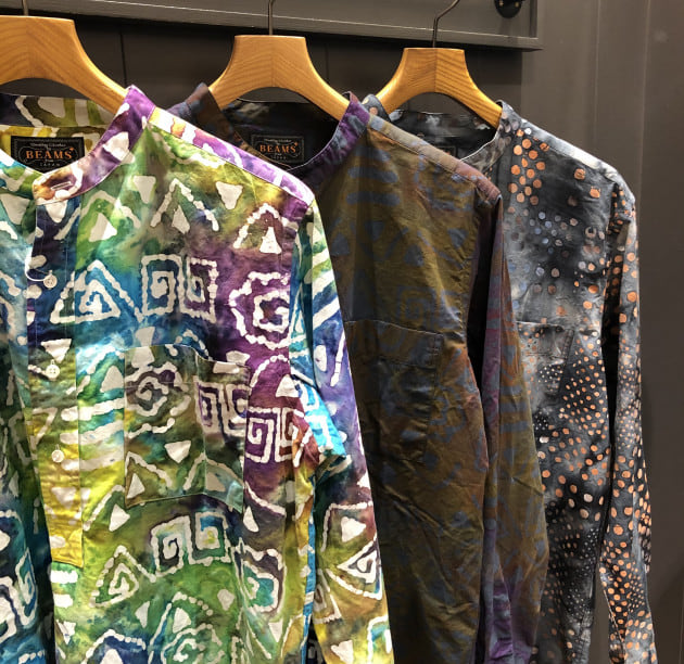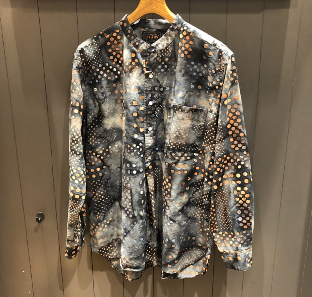 BEAMS PLUS / バティックプリント バンドカラーシャツ