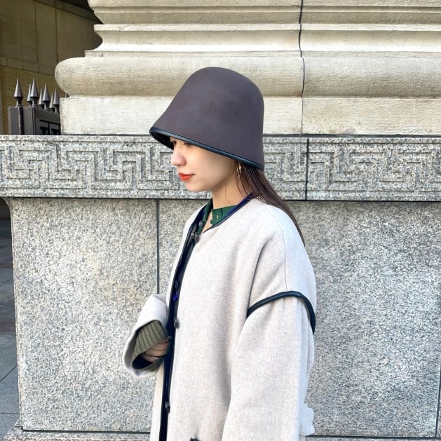 さっと被れて、オシャレ感も演出できるこちら。私も実際に購入しました!時間がない時にも、大活躍中です、!フェイクレザーのパイピングがミソですよ◎