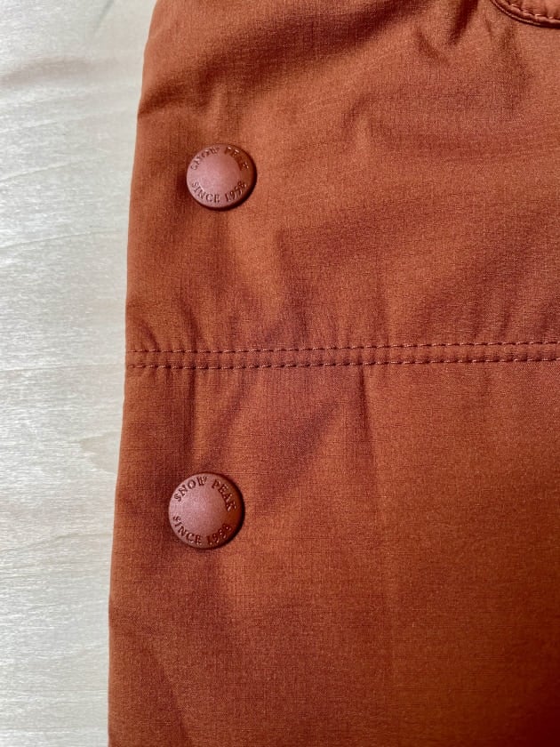 同色のスナップボタンを使用しており、