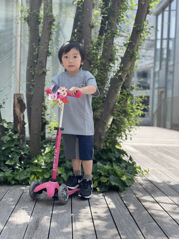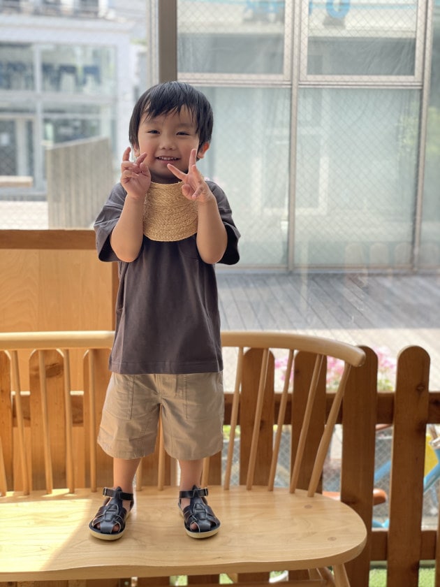 コチラは、90センチのTシャツに100センチのパンツを着用しています。
