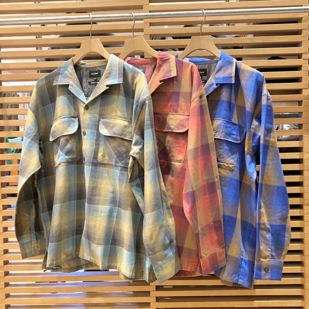 BEAMS / オンブレチェック イージーフィット オープンカラーシャツ