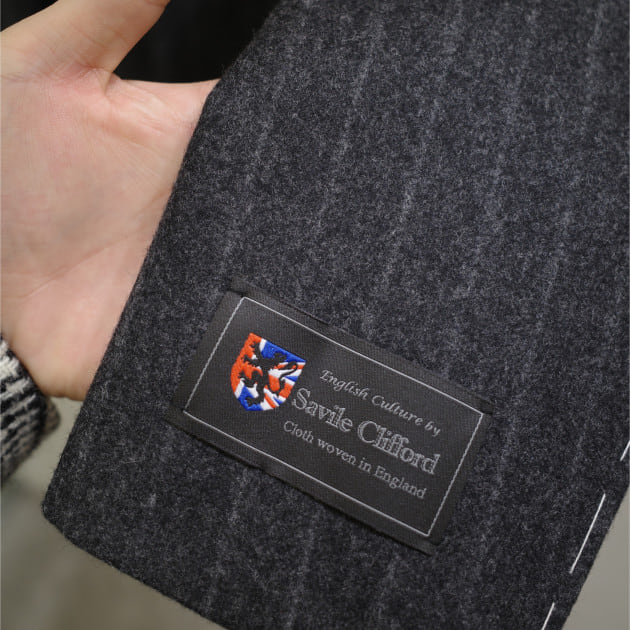 英国"Savile Clifford"社の生地を使用しており、ガッシリとしたクラシカルな生地感が特徴的です。