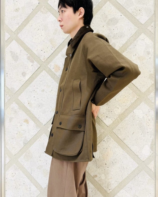 《Barbour》を代表するモデル「BEDALE CLASSIC FIT」をベースに、《BEAMS F》が別注したスペシャルな一品。