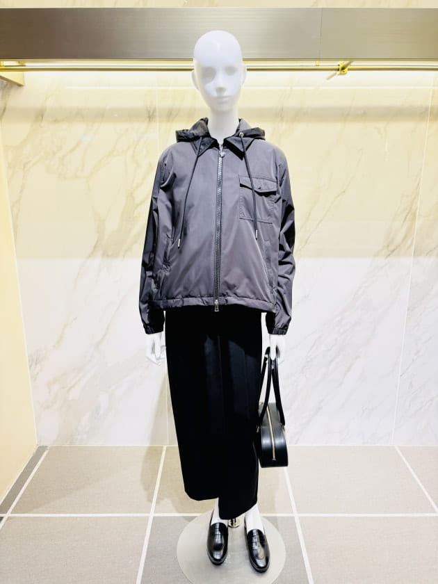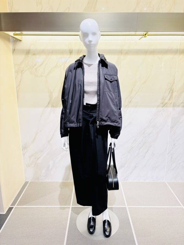 裾広がりの軽やかなシルエットに加えて、来たる冬の寒さにも安心の、気密性を高めた着こなしも叶います◎