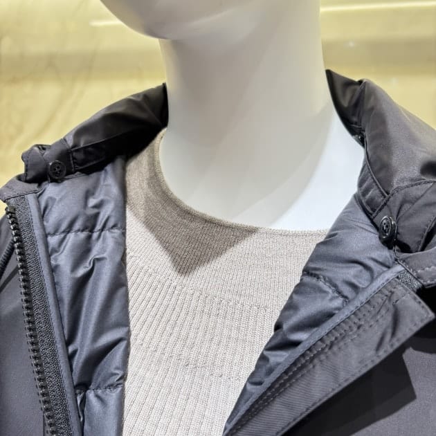 身頃にはダウンを搭載。軽やかさと保温性を兼ね備える、まさにモダンなディテール。