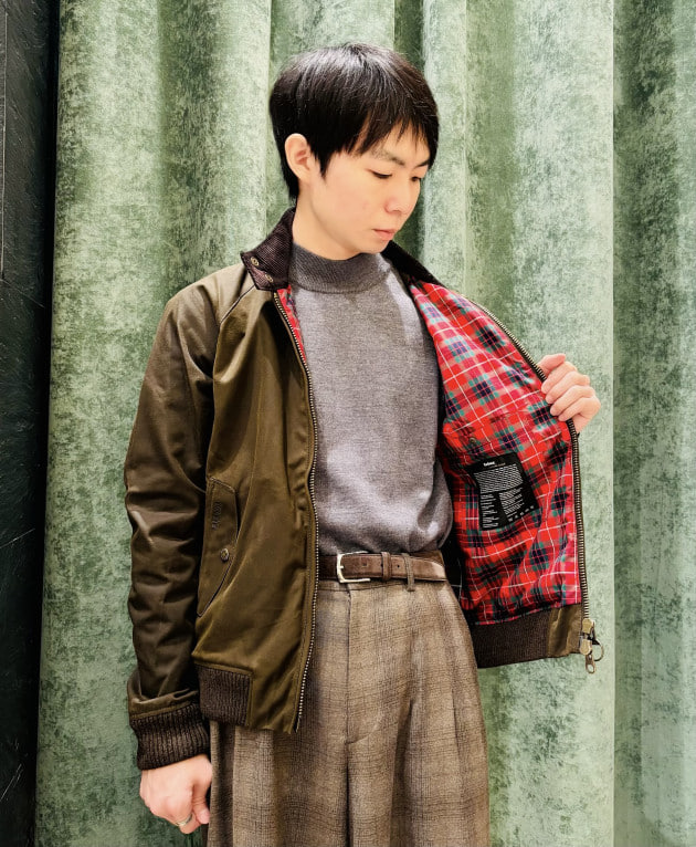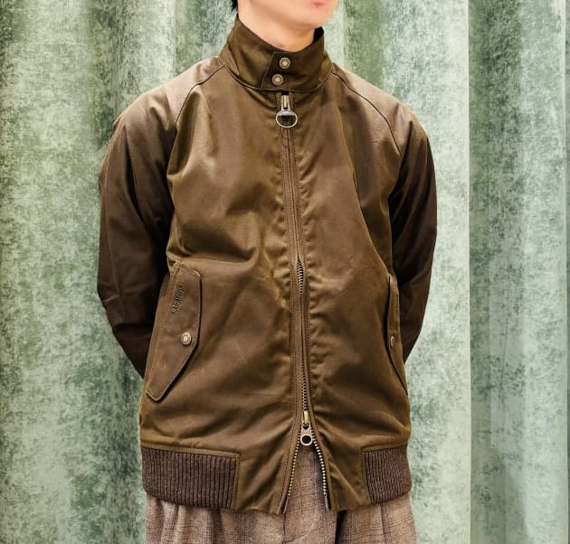 表情は《Barbour》社のワックスコットンを使用したスペシャルな一品。