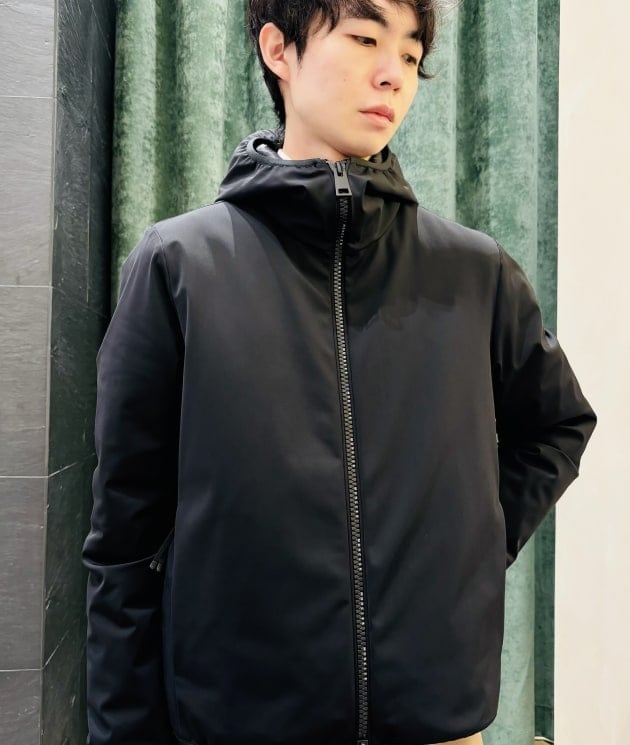 表地の柔らかく、さらりと滑らかな肌触りも心地良い一品。いわゆる"シャカシャカ系"ではなく、どこか静かで落ち着いた佇まいが、大人のシンプルスタイルにぴったりです◎ 中はダウン90%・フェザー10%と高品質で適度な保温性があり、冷たい気温感の春先まで活躍が期待できます。