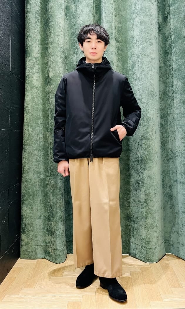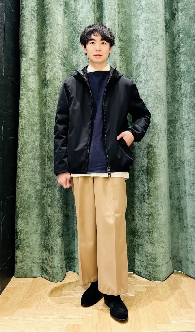 勿論、厚手のスウェットやスプリングニットにも合わせられるサイズ感で、着こなしも様々楽しんでいただけます。
