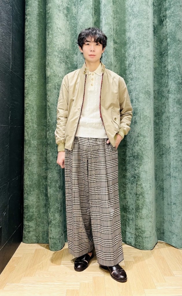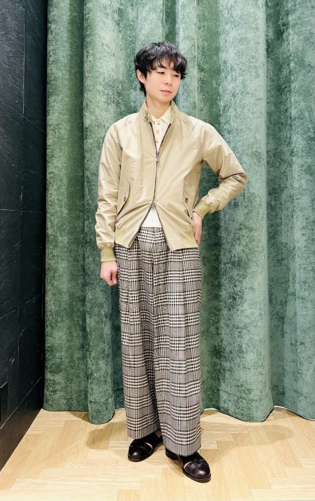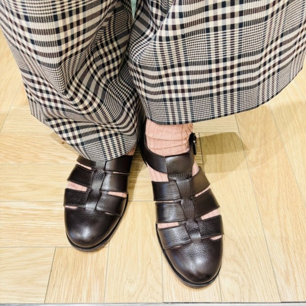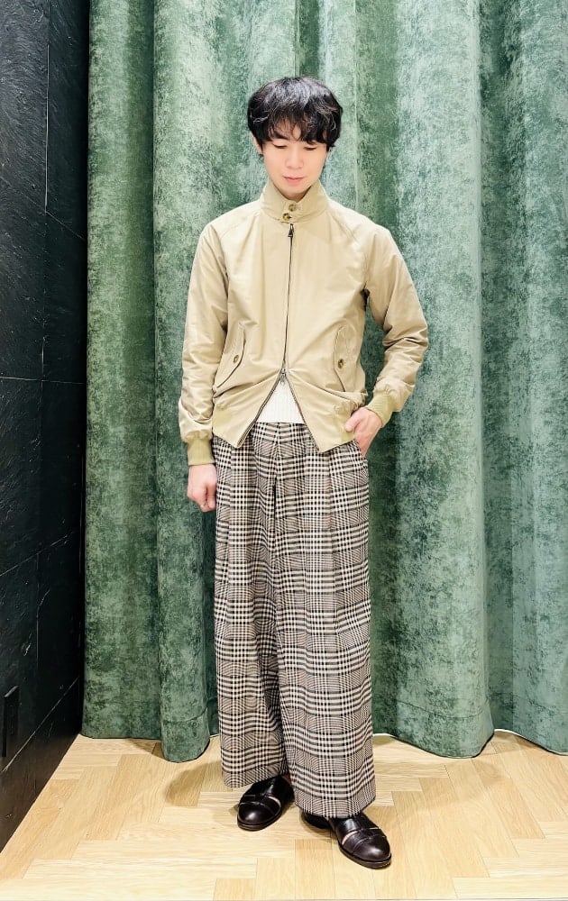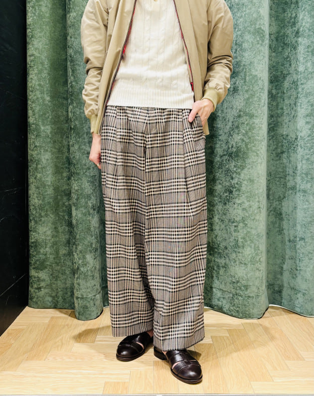 数年前に購入し、今期活躍しそうな予感の《kolor》のチェック柄ワイドパンツに、《F.LLI Giacometti》の名品、スコッチレザーグルカシューズを合わせた春の装いで。