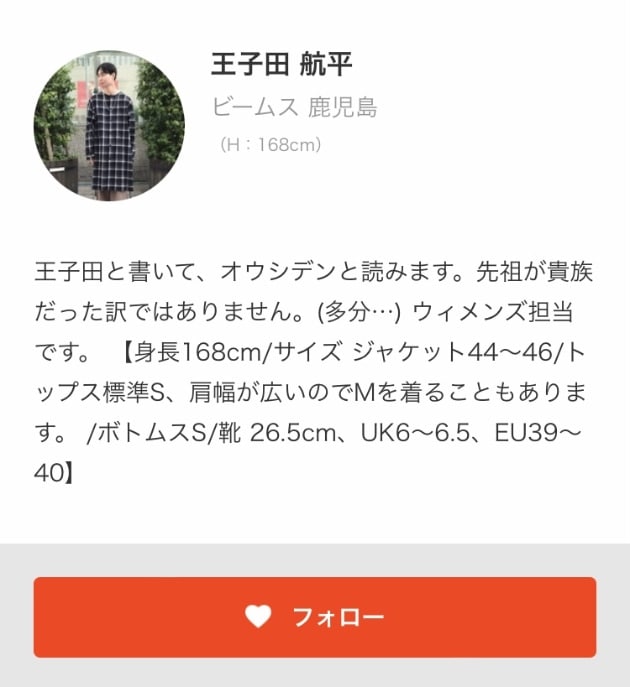 ウィメンズ担当ですが、スタイリング、フォトログでのサイズご紹介、ブログも更新しております。よろしければ、フォロー・お気に入り登録の方宜しくお願い致します。