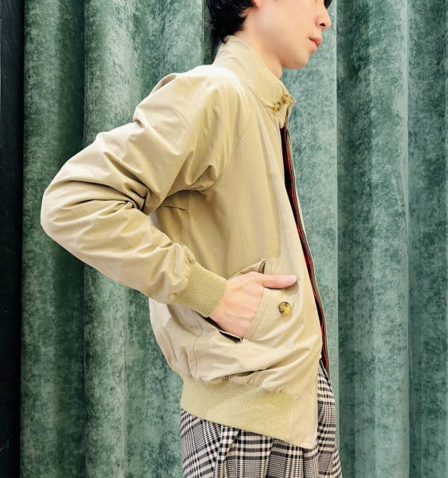 《BARACUTA》名品の「G9」ショートブルゾン。春秋に着やすいポリエステルコットンの生地感と個性豊かなカラーバリエーションが魅力的です。