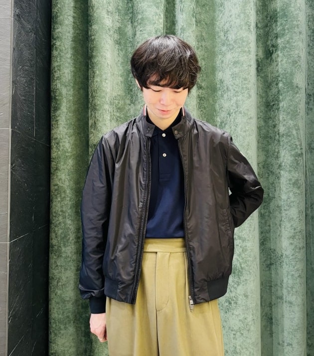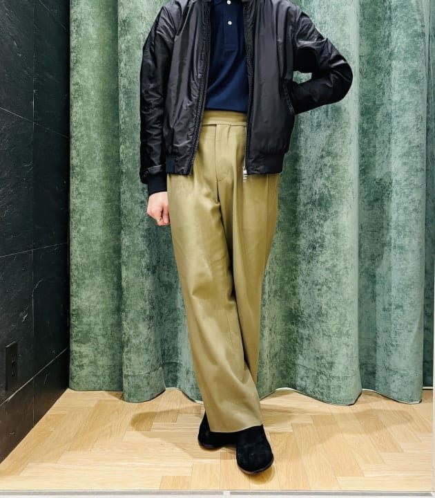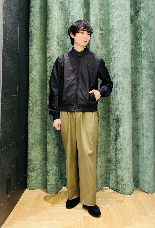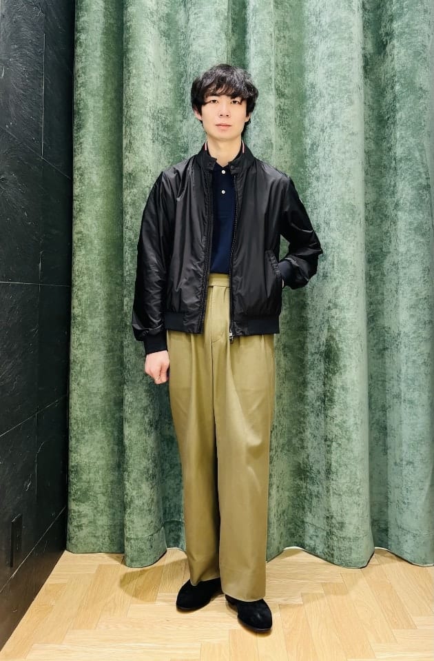 ブルゾンがコンパクトな分、ボトムスはストレート〜ワイドシルエットがバランス良く纏まります。